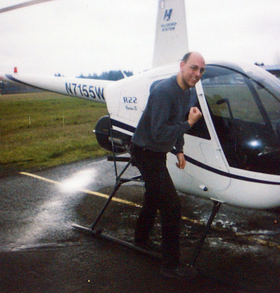 Praktischerweise hatten wir zwei Stunden nach dem Stagecheck eine Flugstunde geplant und so konnte ich dann auch gleich meinen ersten “Supervised Solo” fliegen. Supervised bedeutet, daß Jon und ich ganz normal ins Charlie-Pattern flogen und einige Runden drehten. Dann sollte ich auf dem südlichsten Helipad landen. Jon sagte ich solle nun alleine einige Runden für die nächste halbe Stunde drehen. Er meinte noch der Heli werde diesmal durch das fehlende Gewicht beim Start mit der Nase nach oben gehen. Darauf sollte ich Acht geben und nicht zu viel Vorwärts-Cyclic geben.