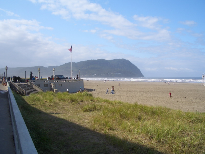 Auf der Hinfahrt nahmen wir uns die Zeit an der Küste entlang zu fahren und wurden reichlich belohnt. Erst stoppten wir in Seaside. Das ist so ein richtig auf Tourismus getrimmter Ort. Aber herzallerliebst. Ein Souvenirladen neben dem anderen und so kitschig schöne, bunte Häuser. Dann der Strand – total breit und die Brandung hätte jedes Surferherz höher schlagen lassen.