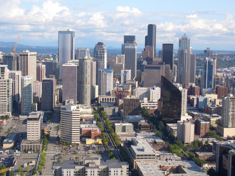 Dann entdeckten wir in South Bend, ein recht unscheinbares Örtchen, ein Courthouse wie es im Bilderbuch steht. Schließlich ging unsere Fahrt dem Ziel entgegen. Wir fuhren über eine große Brücke (und ich meine groß!) und dann verschlug es uns beiden die Sprache – dann da lag die Skyline von Seattle vor uns. Wir konnten garnicht schnell genug die Auslöser unserer Kameras bedienen!