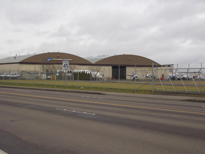 Die Hangar und einige Helis von Hillsboro Aviation.
