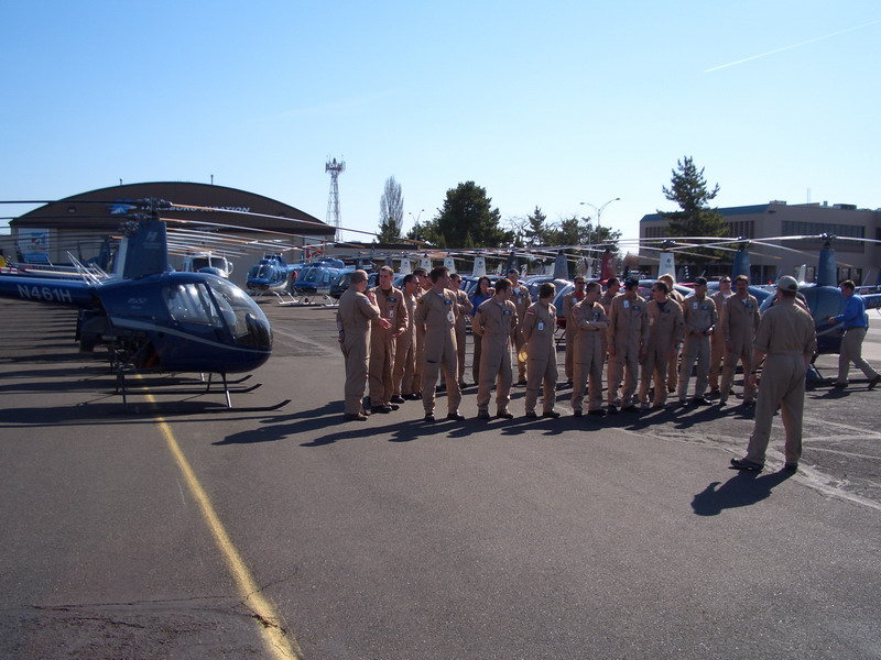 Heute dann folgte der praktische Teil. Durch das schlechte Wetter der vergangenen Tage hatte ich etwas weniger Manövertraining als ich mir gewünscht hatte, aber nun ging es los. Nach dem Preflight kam Daniel auf den Center-Tiedown und wir setzten uns in den Heli. Nach erfolgreichem Starten stellten wir noch fest, daß wir den von mir vorbereiteten Flugplan nicht öffnen werden, sondern lediglich in die West Practice Area fliegen. Ich hatte mir das schon gedacht, denn erstens war das Wetter nicht gut genug um den geplanten Flug nach Astoria durchzuführen und zweitens hätte der Flug viel zu lange gedauert.