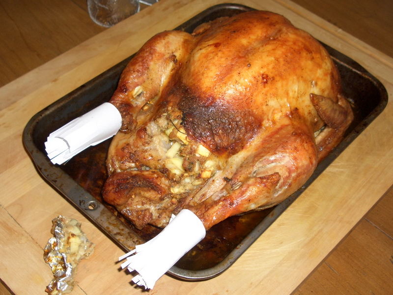 In alter amerikanischer Tradition haben wir gestern einen riesigen Truthahn bereitet. Jan – der neue Mitbewohner statt Samuel – und ich waren am Abend zuvor noch die notwendigen Zutaten einkaufen. Gestern mittag haben wir dann die Füllung erstellt und “Pedro” – wie wir ihn nannten – in die Sauna, sprich den Ofen geschoben.