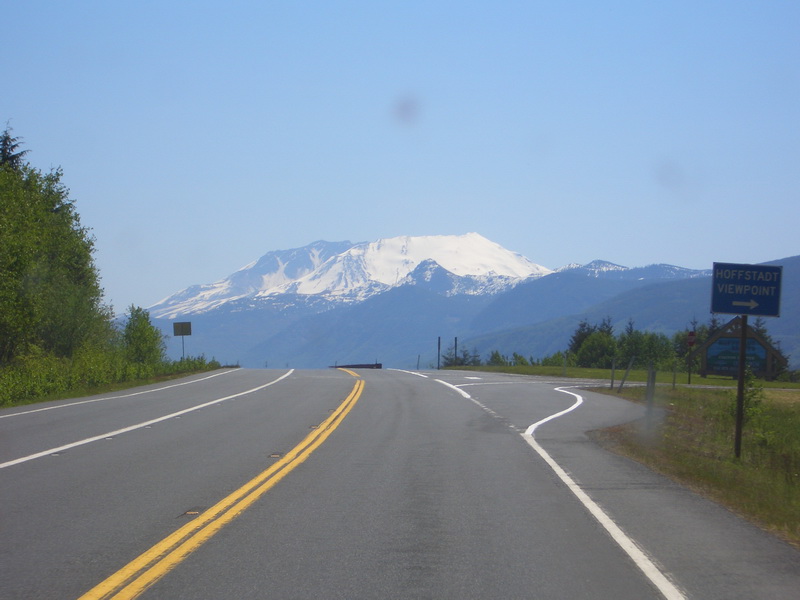 Wir fuhren also morgens um 10 Uhr los und kamen ca. 2 Stunden später an unserer ersten geplanten Station an. Dem “Hoffstadt Viewpoint” von dem aus die Helicopter-Rundflüge zum St. Helens starten. Dort arbeitet einer unserer Fluglehrer und fliegt 20 Minuten-Touren zum Berg. Nachdem wir uns ein wenig mit ihm unterhalten hatten fuhren wir weiter.