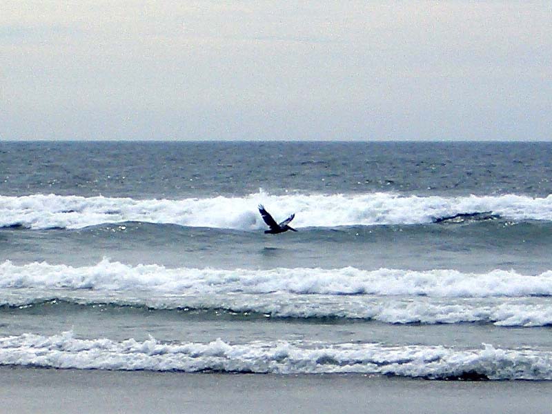 Wir genossen den Strand, die Brandung, die Sonne und die Pelikane, die uns ein tolles Schauspiel darboten. Wir testeten die Wassertemperatur und beschlossen einstimmig, daß es viel zu kalt ist. Doch Andre wagte sich dann doch noch hinein.