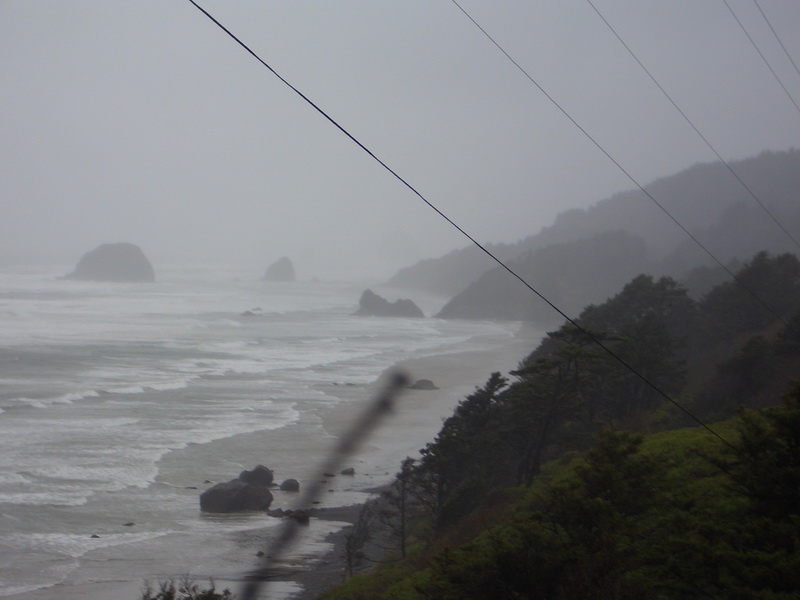Am Sonntag stieg noch Alexander mit ins Auto. Wir fuhren stromabwärts über Scappoose und Kelso nach Astoria. Diesmal hatten wir richtig schlechtes Wetter und als wir bei Astoria kurz an den Strand gingen dauerte es nur wenige Minuten bis wir sandgestrahlt und durchnäßt waren. Bei Windstärken um die 30 Knoten (ca. 50 km/h) sprangen wir schnell wieder ins Auto und fuhren über Tillamook wieder nach Hause. Natürlich nicht ohne uns zwischendurch einen heißen Kaffee und ein Stück Kuchen in einem schönen, kleinen Cafe zu gönnen.